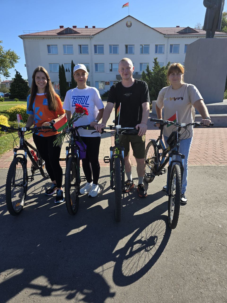 Участники велопробега сделали остановки и возложили цветы у памятного знака «Літаратурная спадчына», братской могилы в урочище «Боровец» и Мемориала, ставшего финальной точкой маршрута.