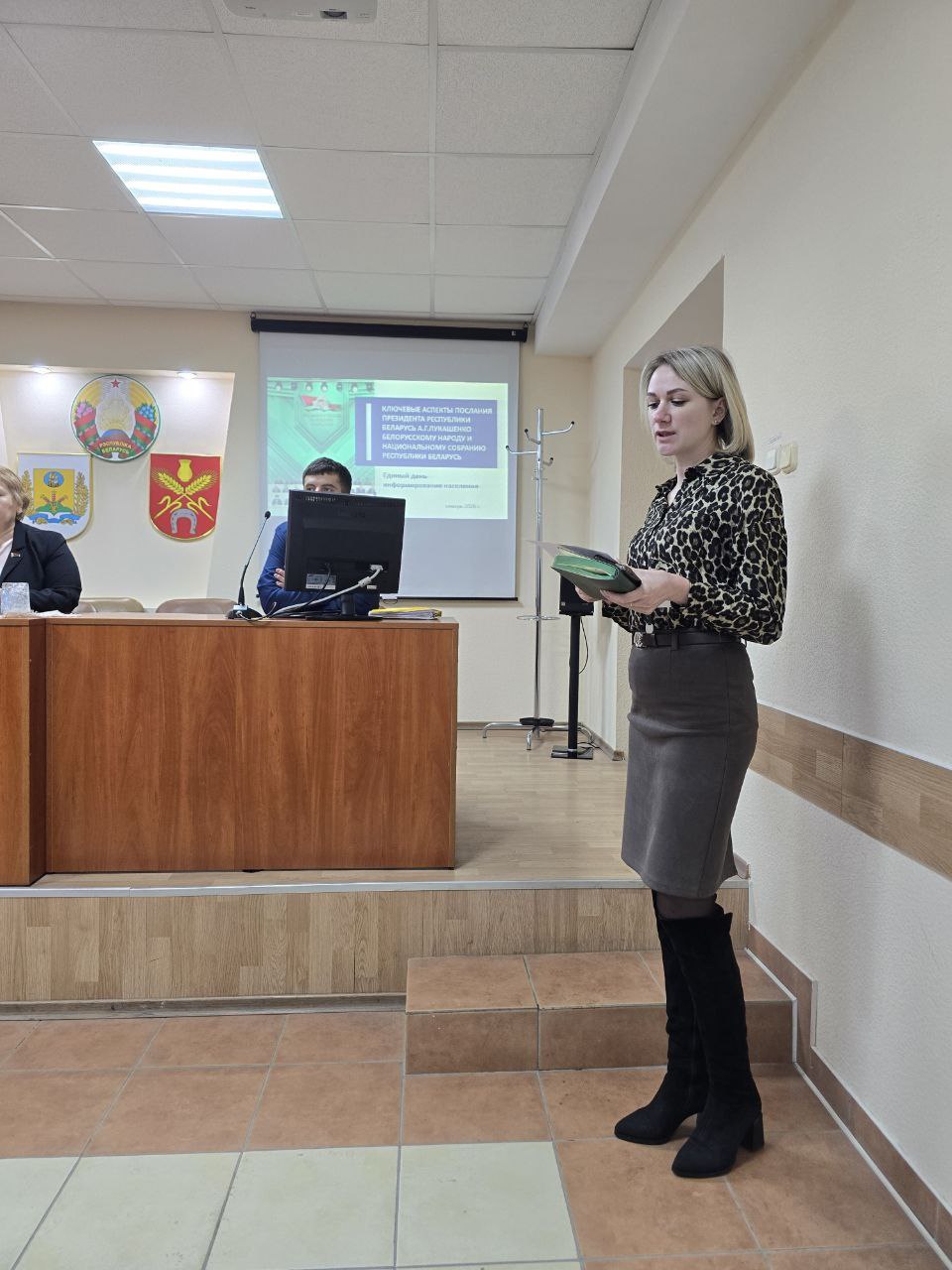Заместитель генерального директора по идеологической работе и социальным вопросам Нина Дылико напомнила присутствующим о главном политическом событии прошлого года. На площадке ВНС Президент Республики Беларусь А.Г.Лукашенко обратился с Посланием к белорусскому народу и Национальному собранию. Была утверждена Программа социально-экономического развития на 2026–2030 годы.