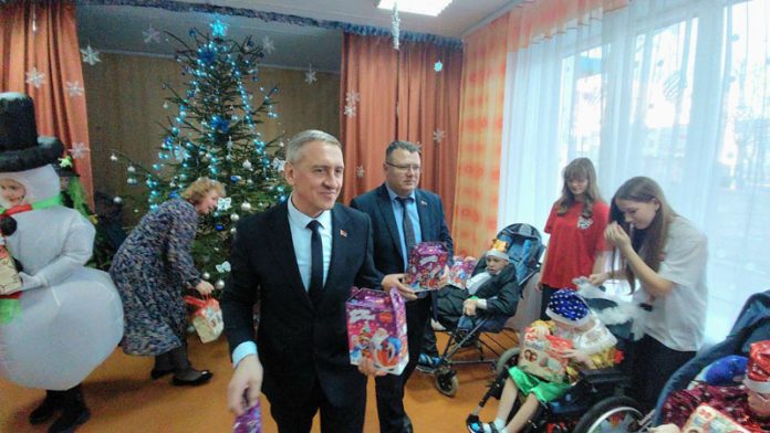Особая часть праздника — подарки. Работники Белорусского цементного завод- члены ПО ОО «БРСМ» вручили каждому ребенку сладости.