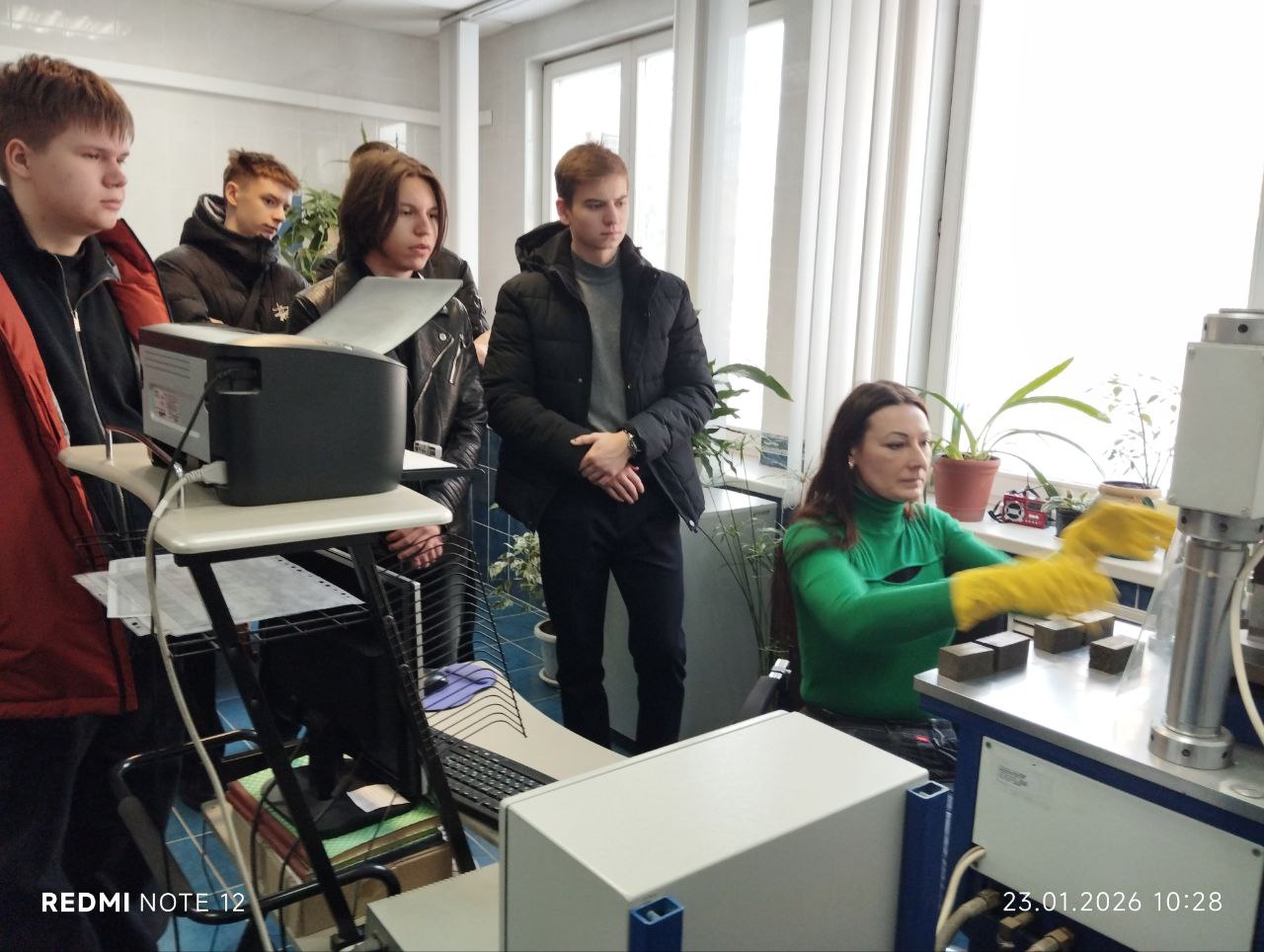 Маршрут начался с ремонтно-механического цеха. Затем группа направилась в испытательную лабораторию и лабораторию физико-химических исследований. Работники показали методы анализа, объяснив, как каждый показатель влияет на конечный продукт — цемент.