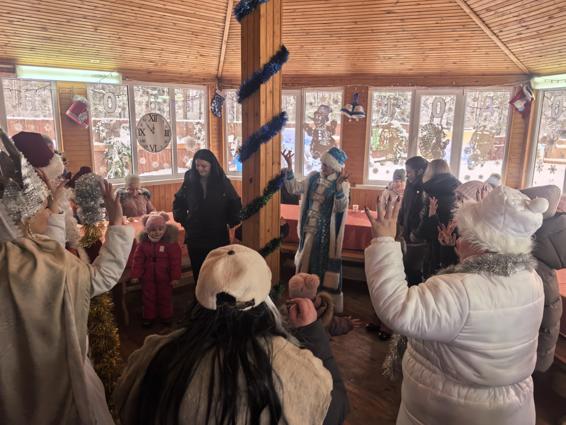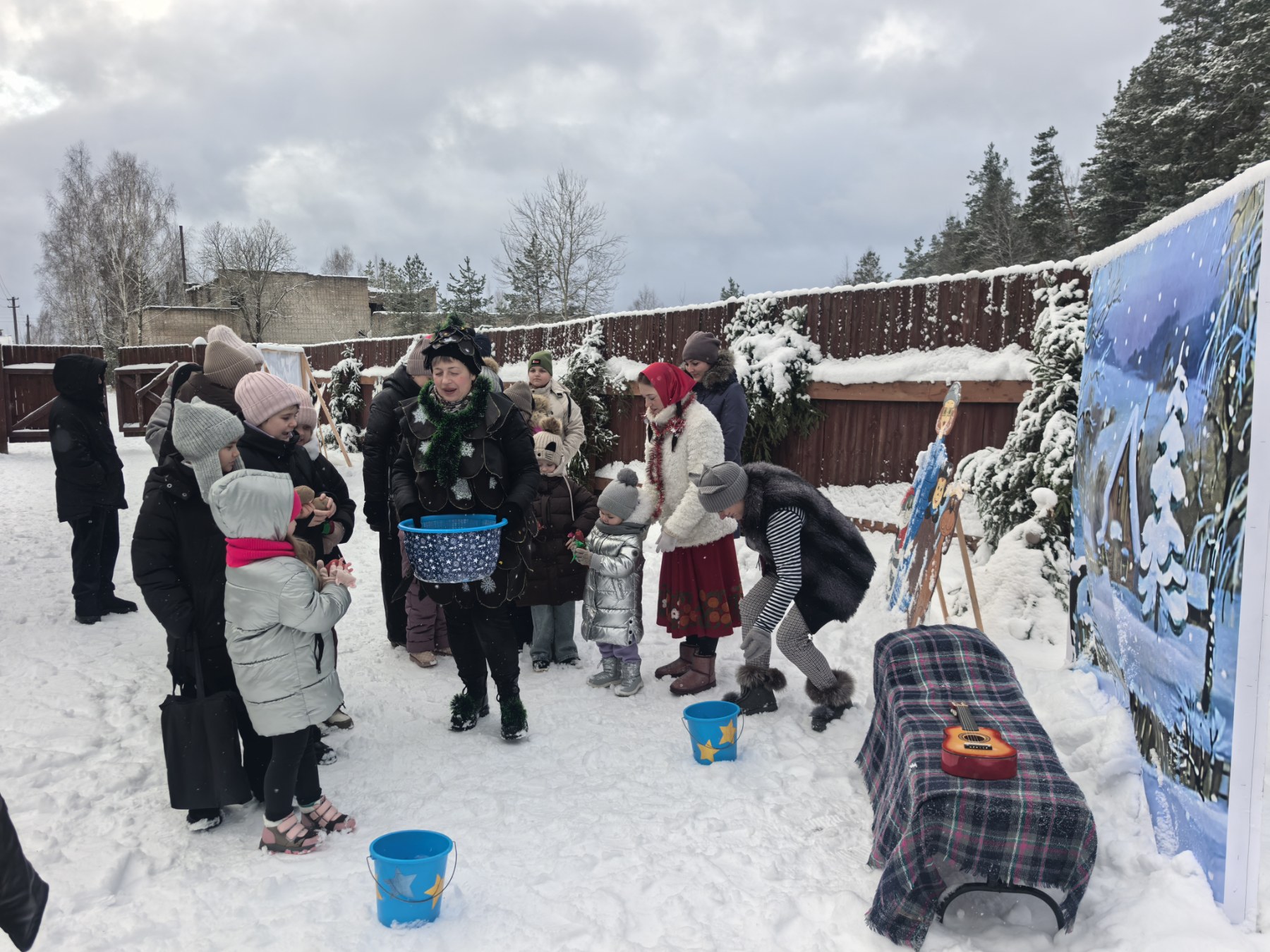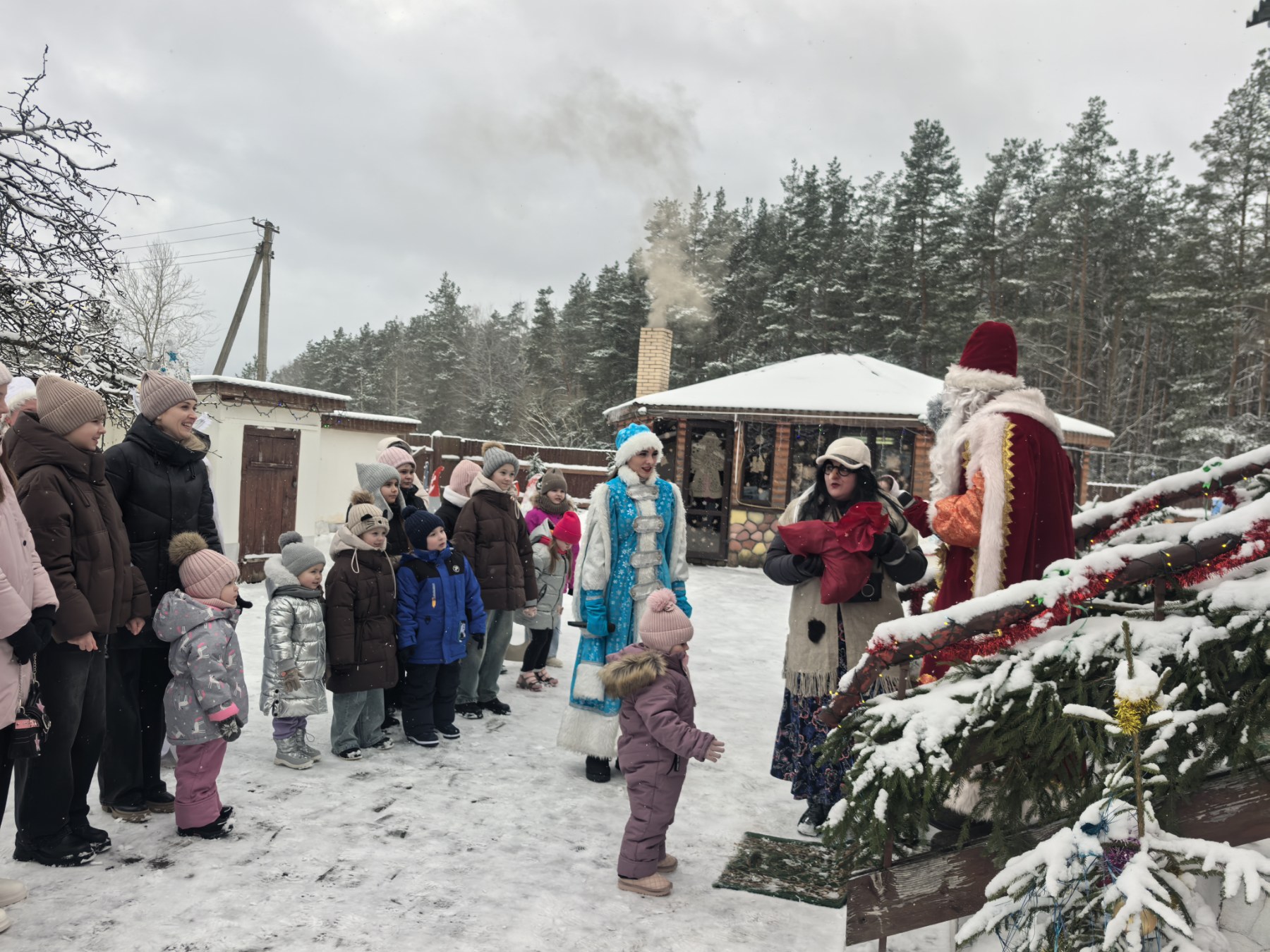 На протяжении трёх дней наших гостей встречали любимые герои — Новогодняя Шишка, Баба‑Яга, Маша из «Маши и Медведя», Кот Матроскин, Снеговик‑почтальон, Снежная королева и, конечно, Дед Мороз со Снегурочкой. Все вместе зажигали елку и водили хороводы возле нее. Сказочные персонажи подарили ребятам море восторга, смех, радость, песни, совместные игры.