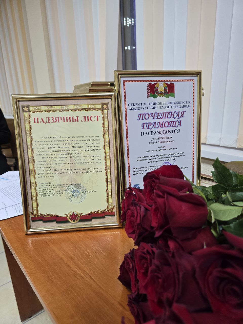 Также пяти работникам ОАО "Белорусский цементный завод" вручены благодарственные письма за разумную инициативу и усердие, проявленные в период проведения учебных сборов, высокие показатели, достигнутые при освоении военно-учебной программы.