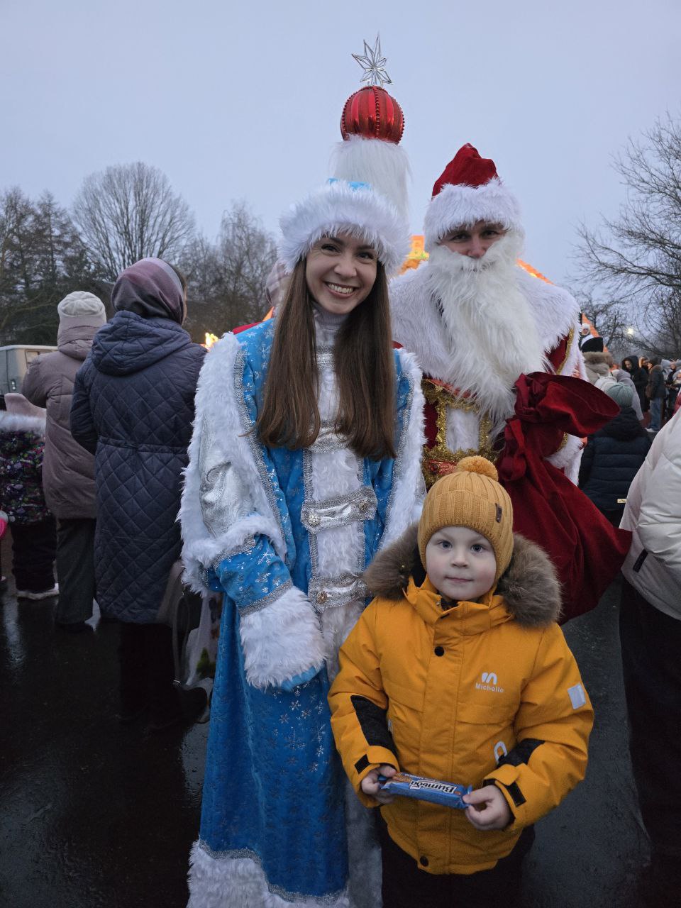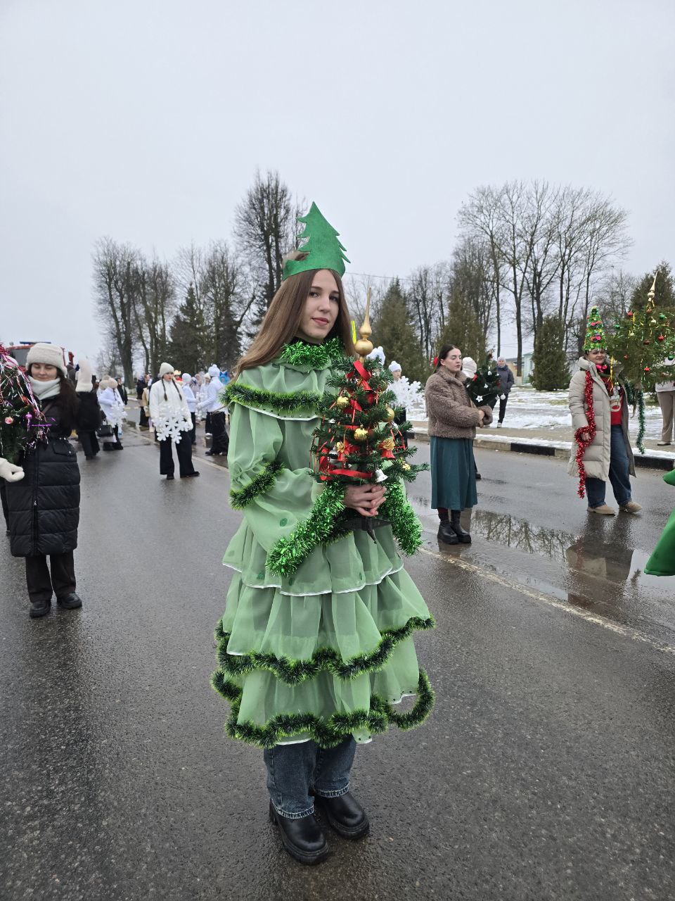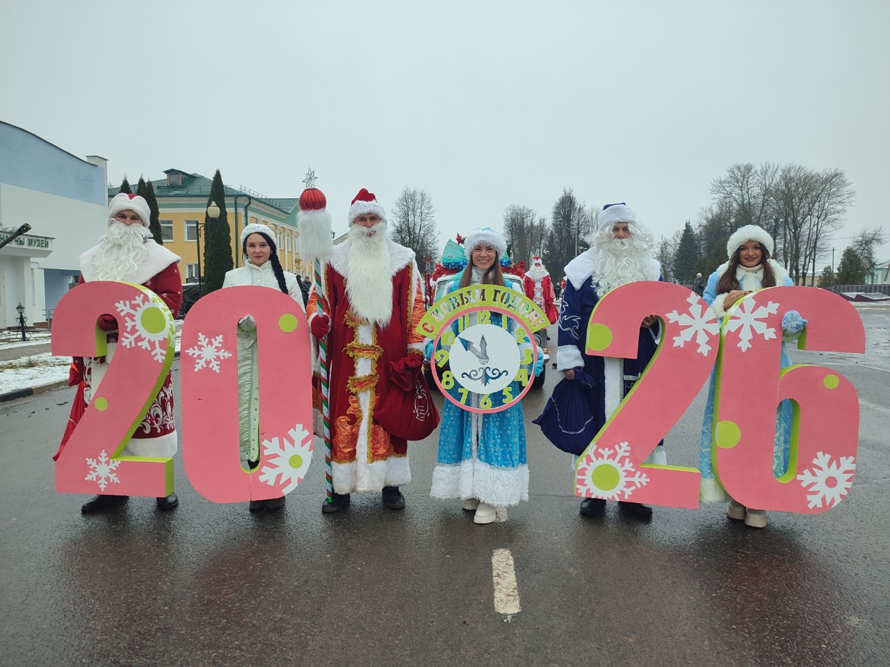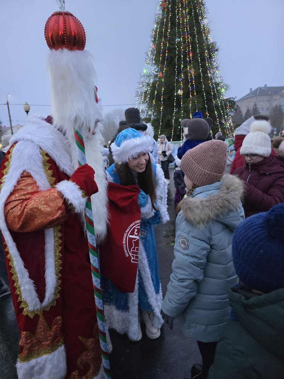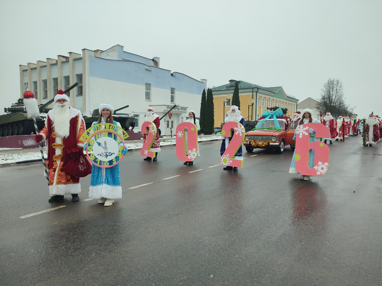 Работники ОАО Белорусский цементный завод" перевоплотились в персонажей зимней сказки – Деды Морозы, Снегурочки, Снежная Королева, Ёлка, Мишка и забавные снеговики выстроились в ряд и торжественно прошли по главной улице города. Вокруг шествовали восторженные детские лица, полные ожидания чуда. Маленькие жители района звонко рассказывали стихи, а в глазах отражался неподдельный восторг.