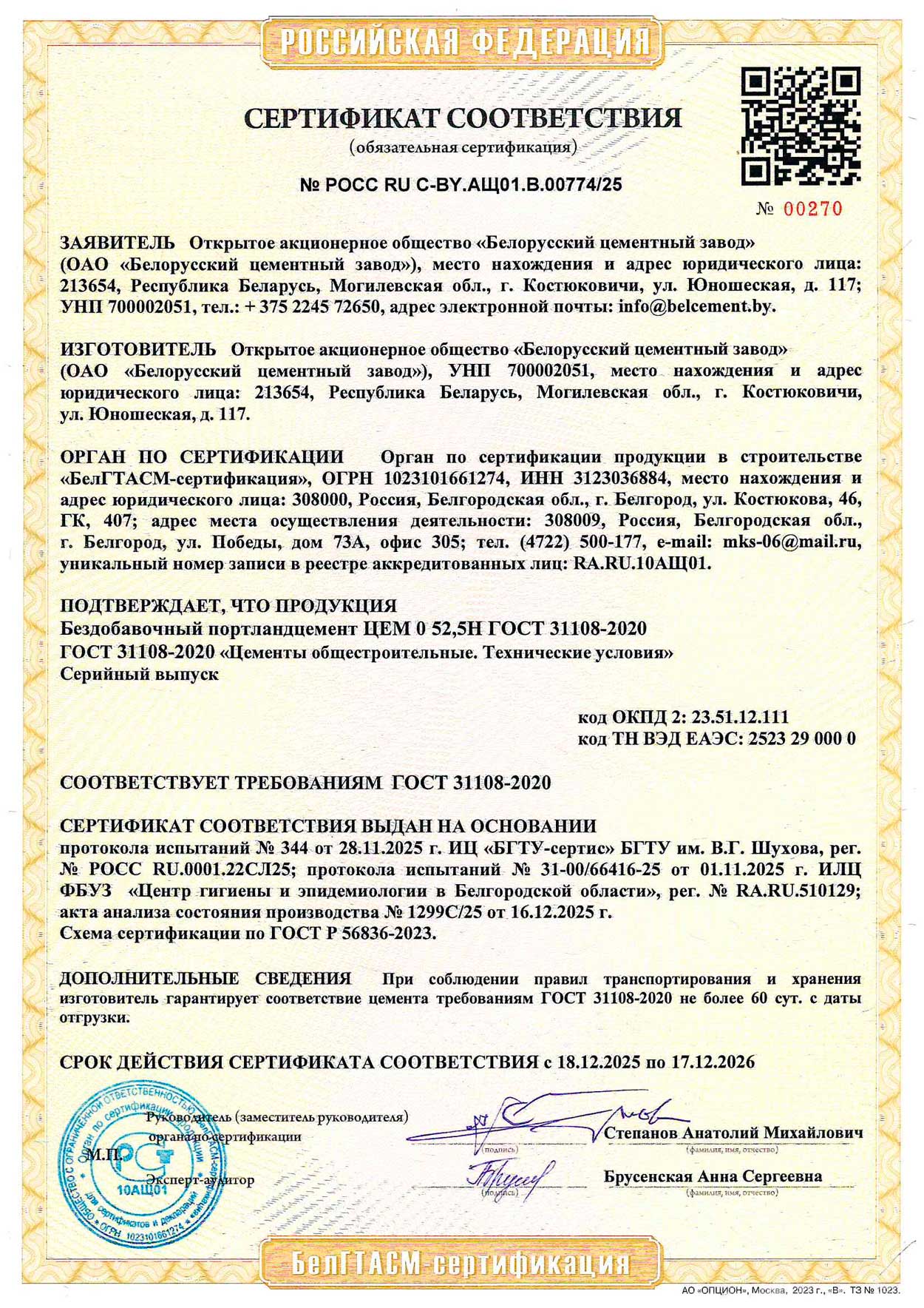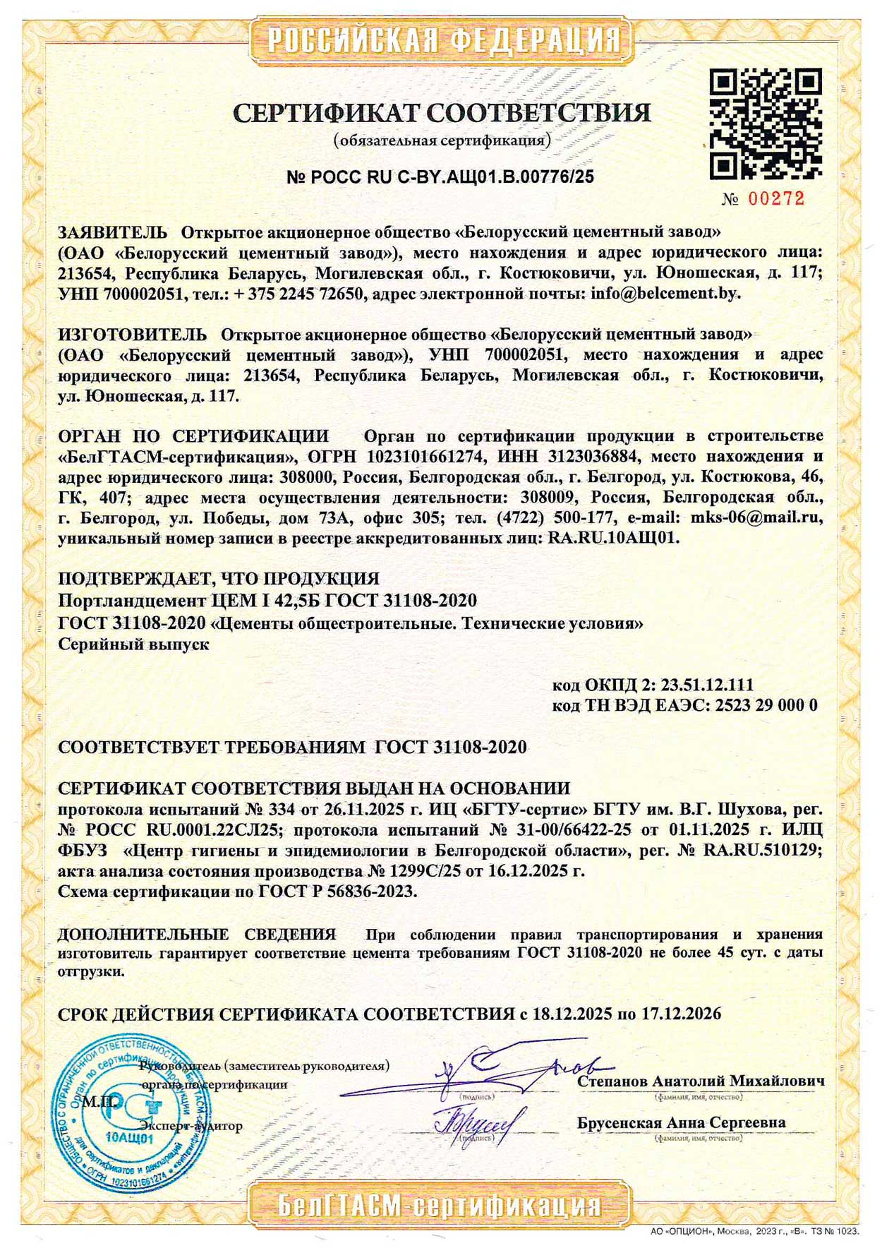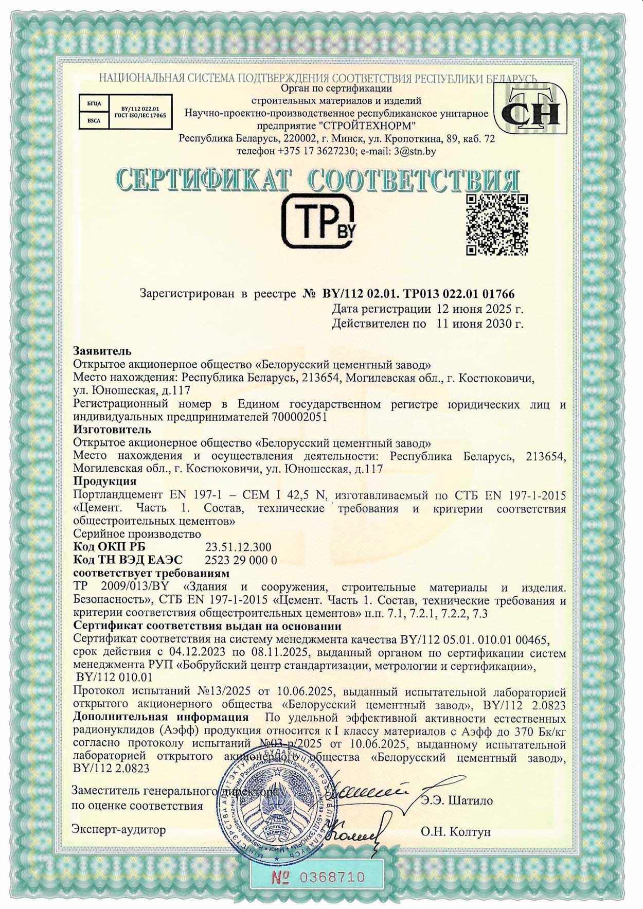 Декларация ЕАЭС ТР 014_ЦЕМ I 42,5Н ДП ГОСТ 33174-2014